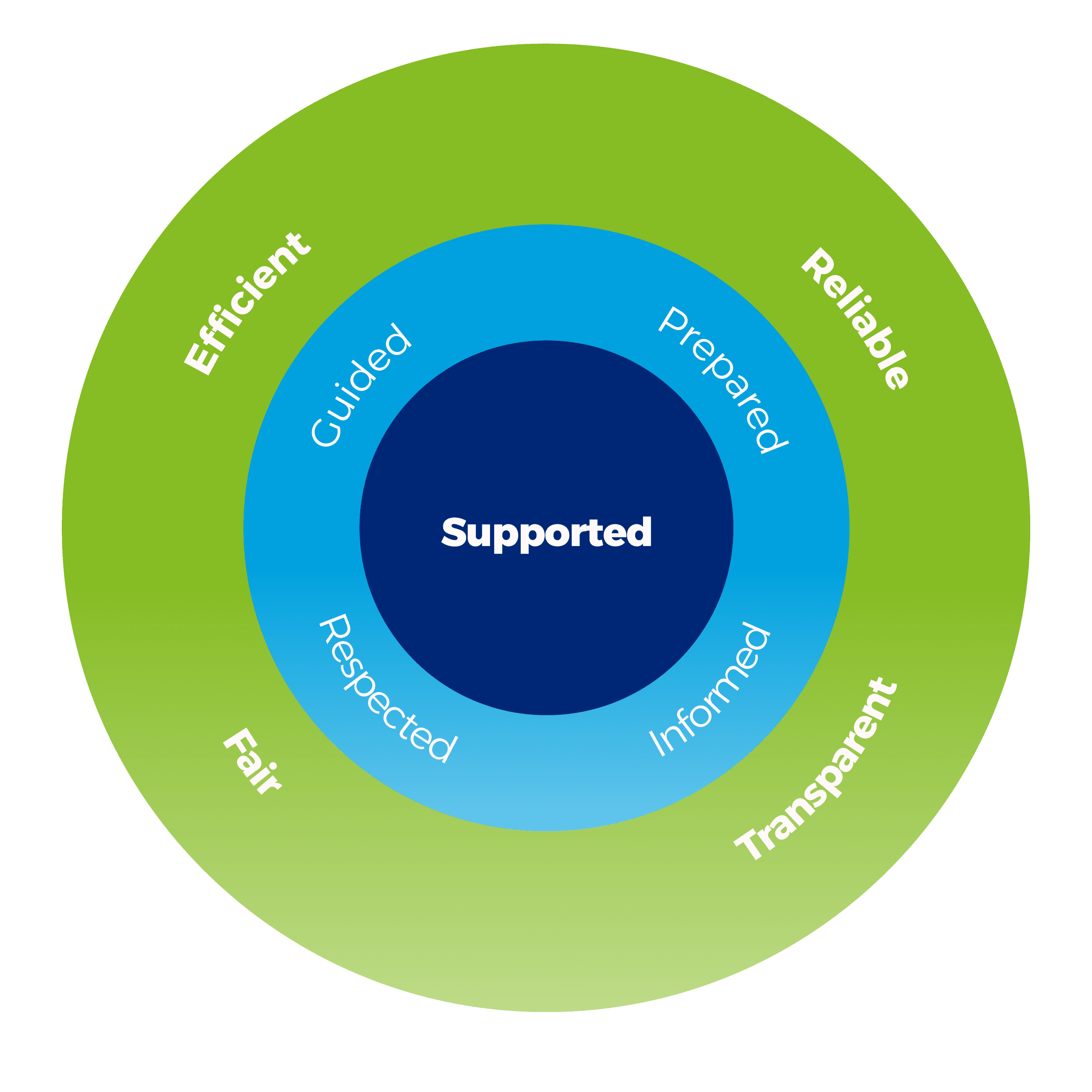 The Patient-Centered Care Model emphasizes emotional and relational support through “I feel” statements, ensuring patients feel guided, informed, respected, and prepared within an experience that is efficient, fair, reliable, and transparent.