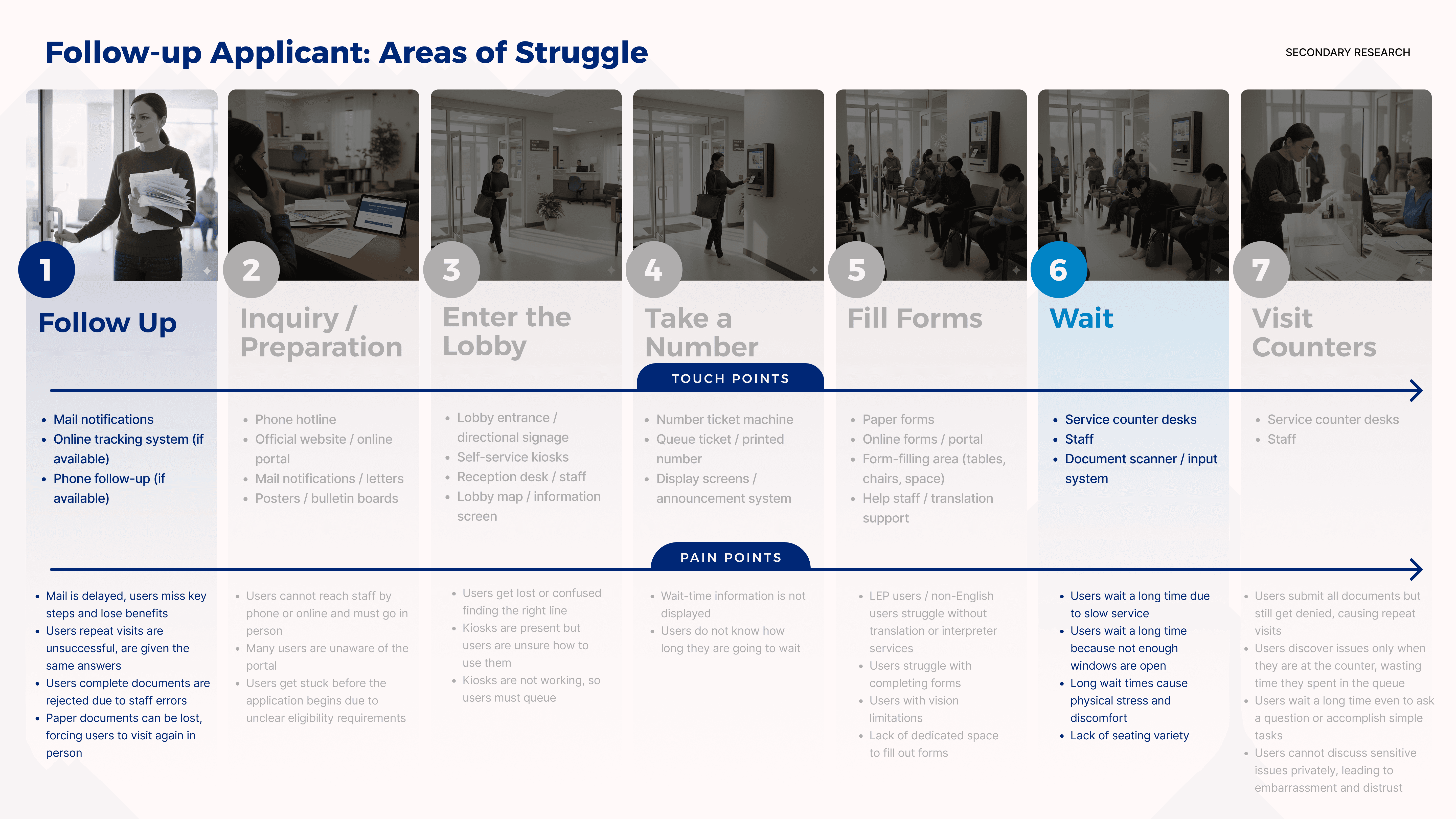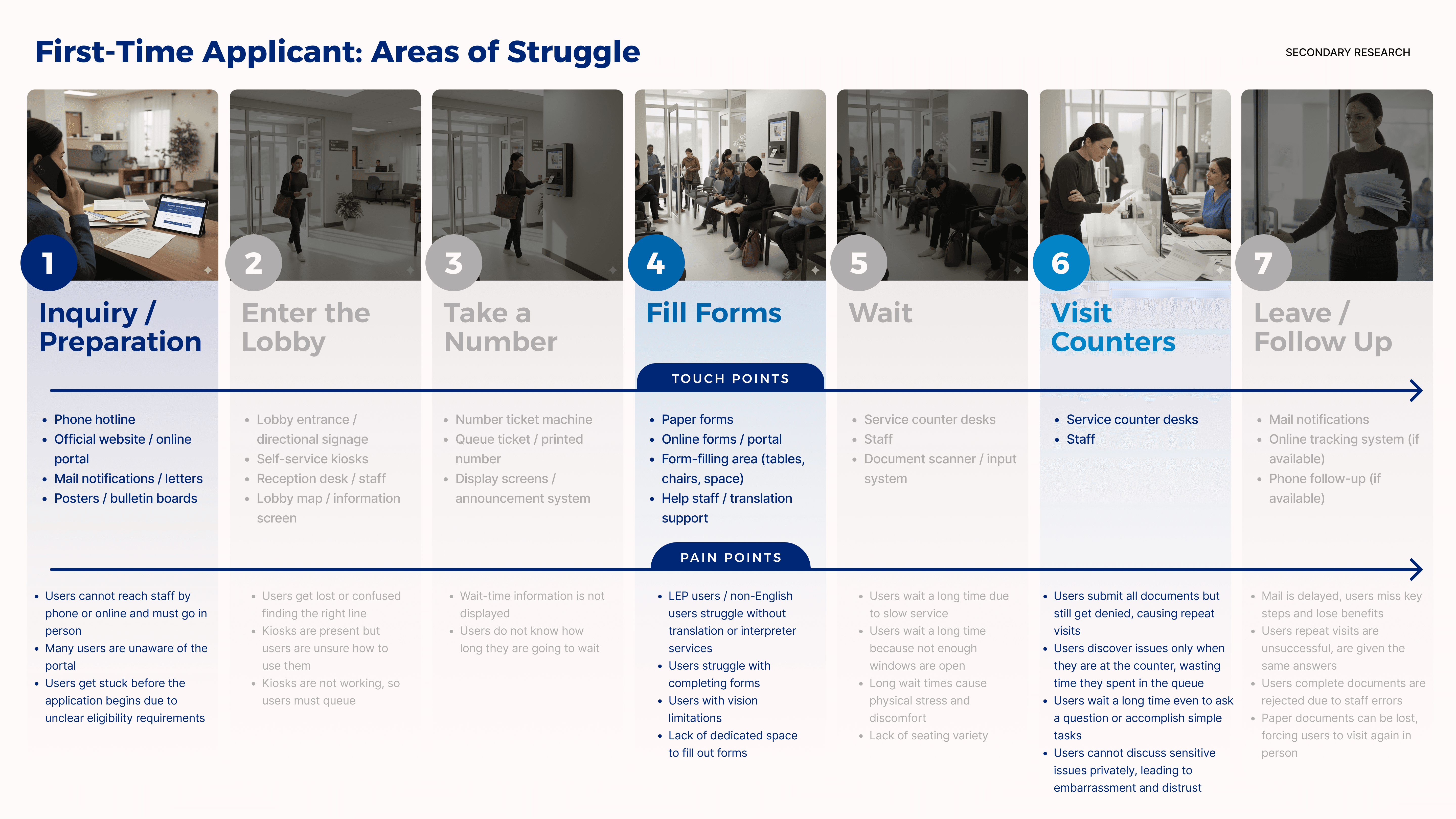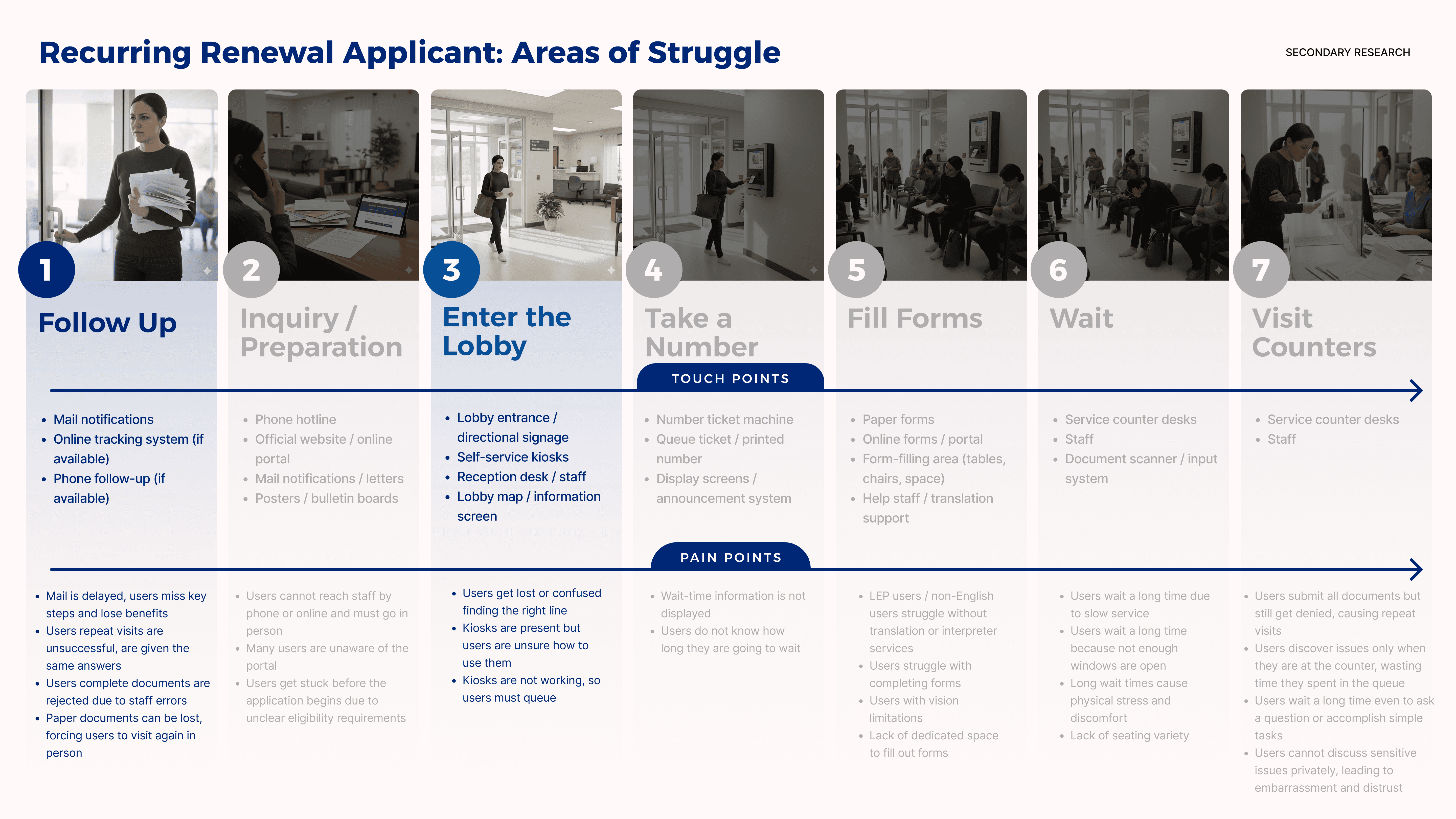 The research from Deloitte is just the tip of the iceberg of the current lobby experience. To gain a deeper understanding of how people think and feel during the benefit application process in the lobby, we conducted additional secondary research, providing more insights and feelings.