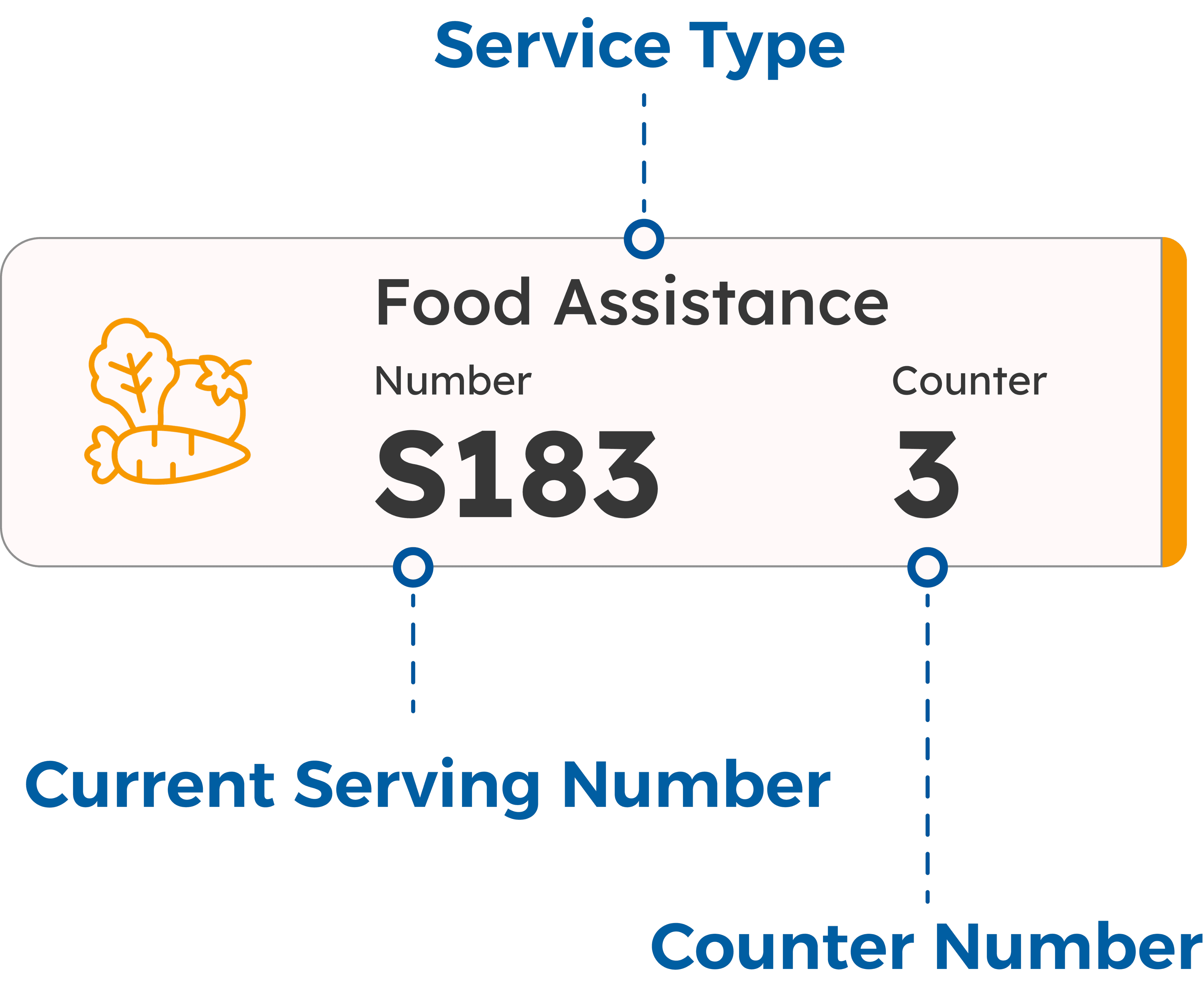 Unique tracking number issued on ticket that can reference your place in line.