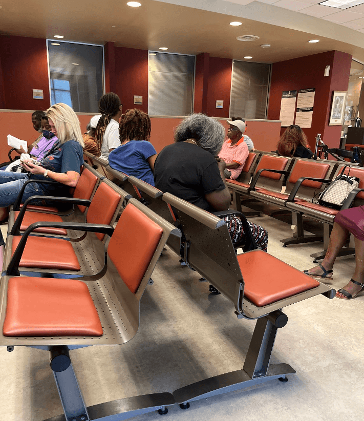 We conducted firsthand, primary research by visiting the Chatham County Health and Human Services office in Savannah, Georgia, to observe the current service flow and user journey within the lobby space. We documented the physical layout and organizational setup to understand how users navigate and utilize the space. Additionally, we assessed signage effectiveness with a focus on accessibility and language barriers impacting users.
